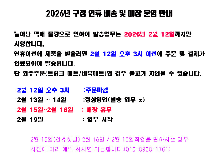 031-451-5820 | MON - FRI AM 10:00 ~ PM 08:00 | SAT AM 10:00~ PM 5:00, SUN, HOLIDAY OFF(»çÀü ¿¹¾à½Ã ON )